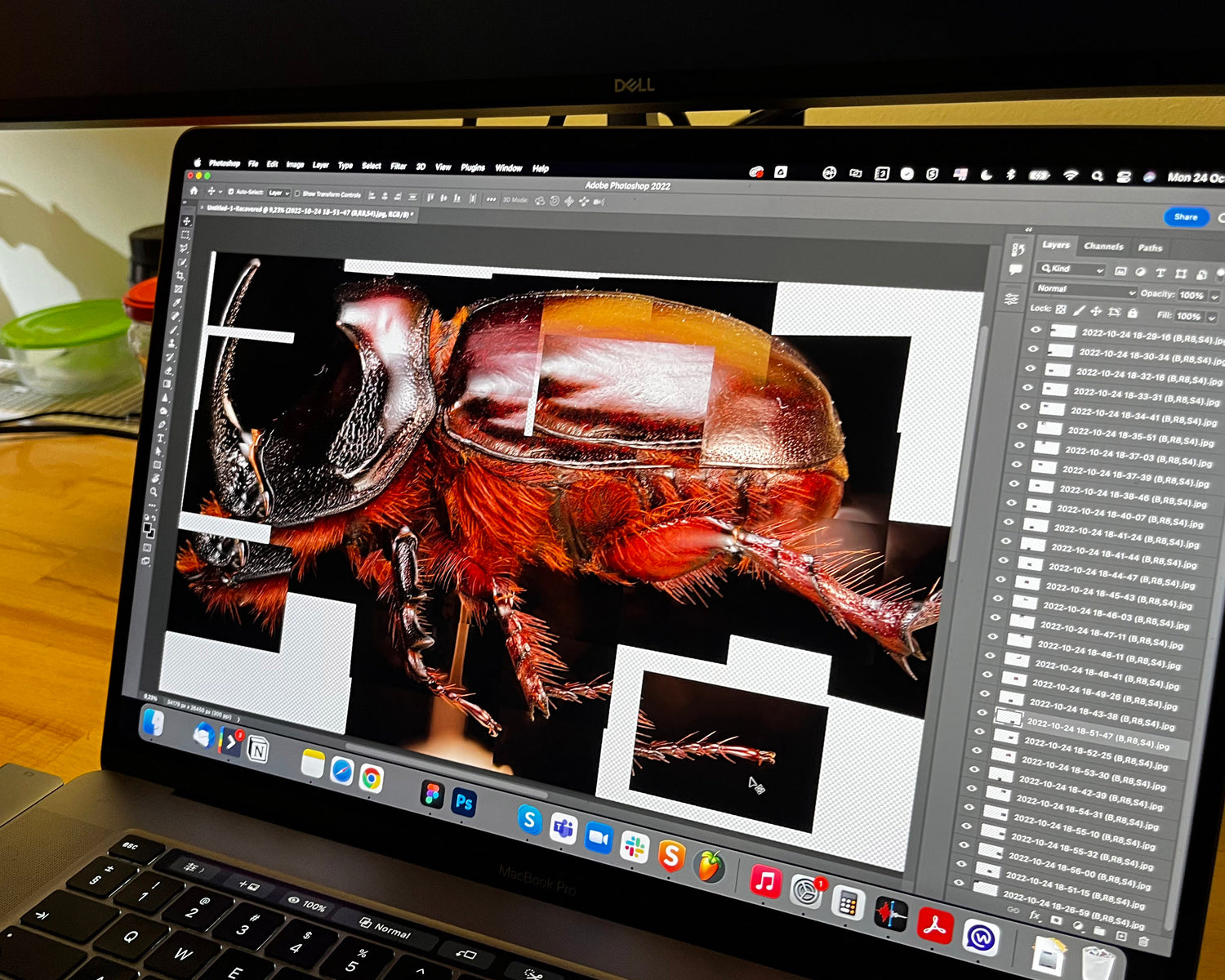 Each image is put together like a puzzle to reveal the macro beauty of the subjects. Then, after many hours of masking, cleaning and color adjusting, the file is ready.