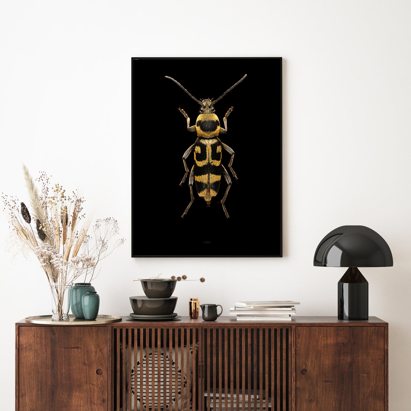 The Harlequin Beetle is renowned for its striking and vibrant coloration, featuring a combination of black, yellow, and red markings. This coloration serves as a form of aposematism, warning potential predators of its unpalatability.
